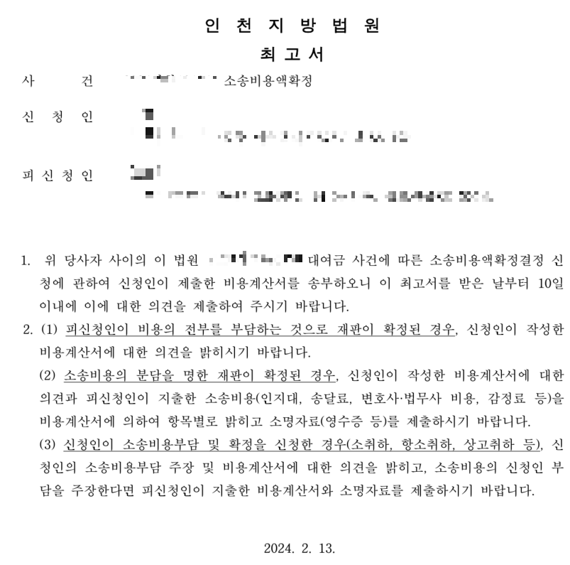 그러면 법원에서 최고서가 피신청인에게 발송됩니다