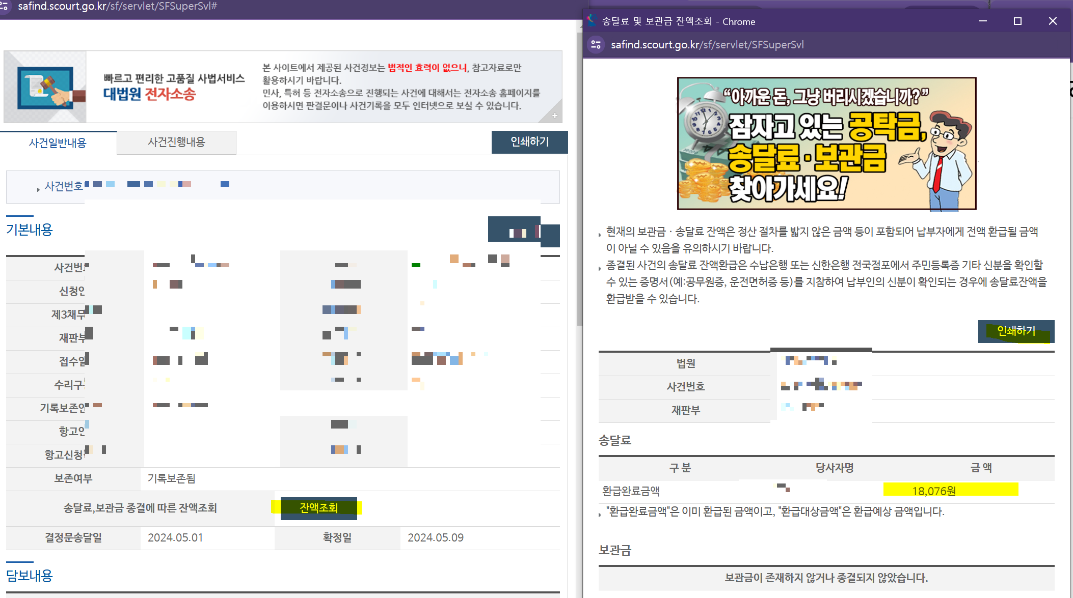 사건번호로 조회하면 쭉 뜹니다