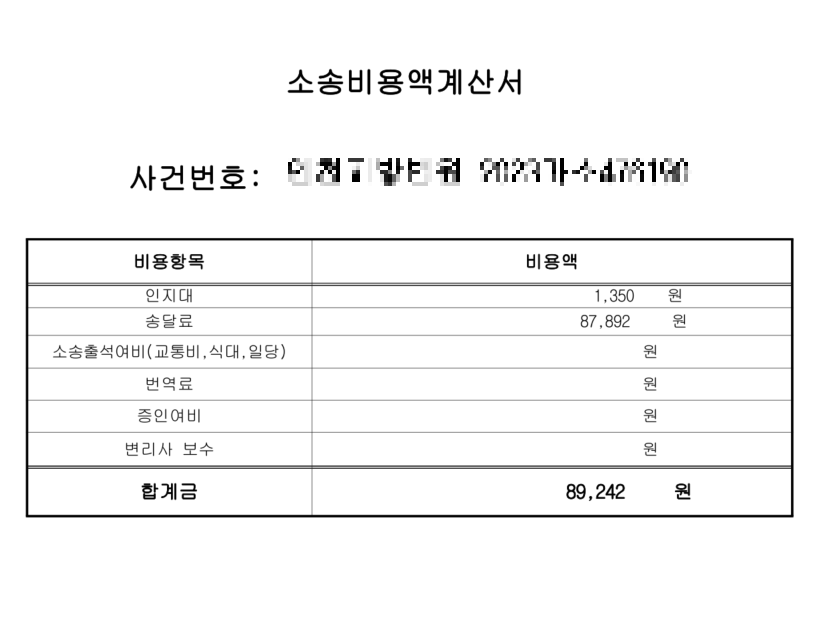 그리고 소송비용계산서를 작성해서 첨부해줍니다